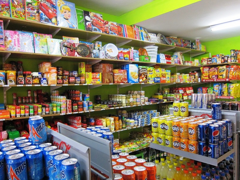Disponemos de zona de quiosco, golosinas, alimentación, embutidos, bebida, frutería, droguería, congelados, helados, productos latinos, bollería, pan de panadería (de Trazo).